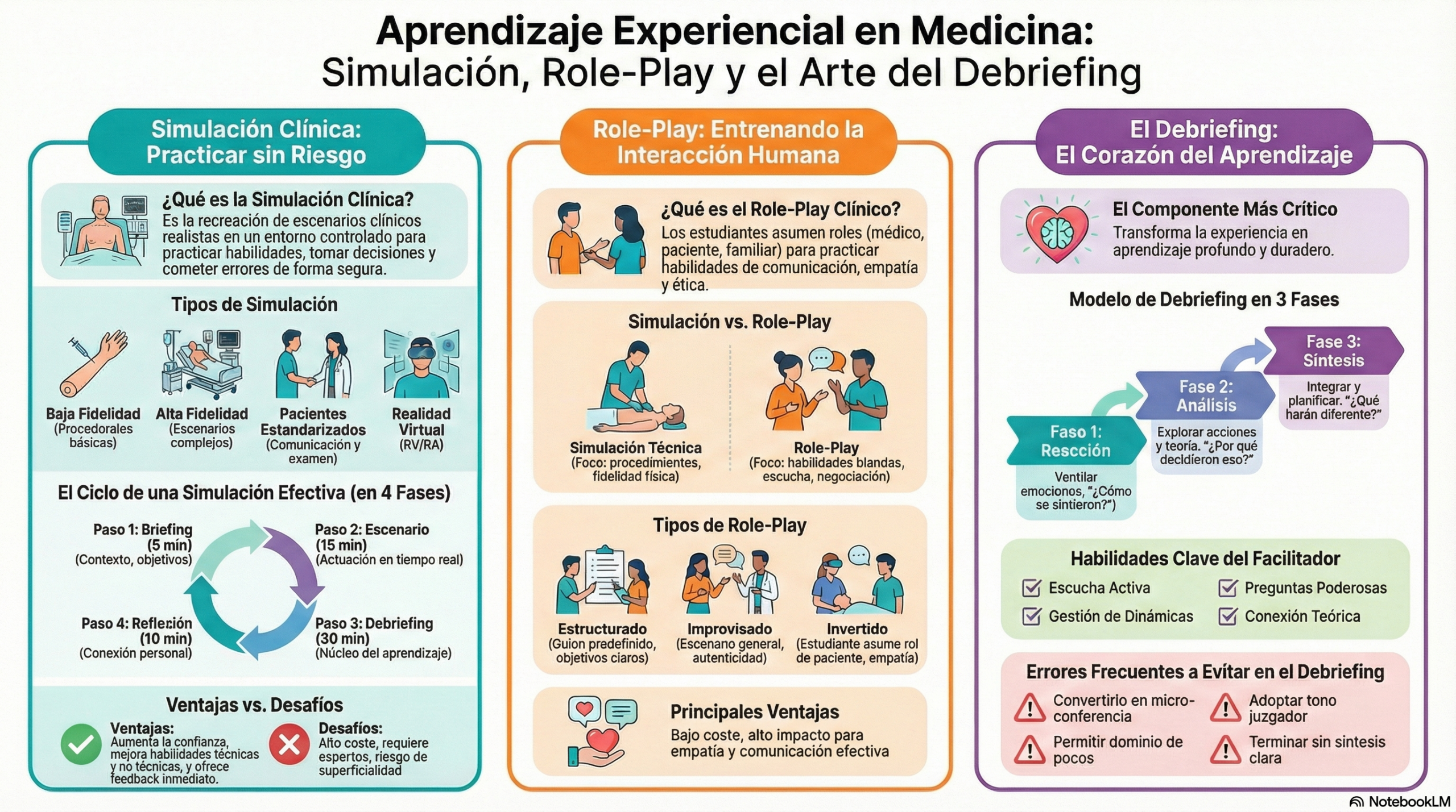 - Módulo 3: Simulación, Role-Play y Aprendizaje Experiencial¿Qué es Simulación? Recreación de escenarios clínicos realistas en ambiente controlado, seguro, donde estudiantes practican habilidades, toman decisiones y reciben feedback sin riesgo para pacientes reales.7